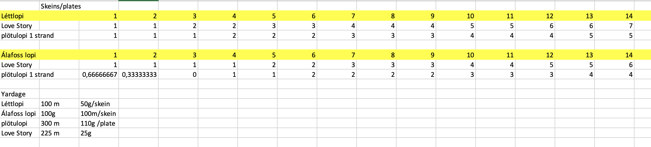 correspondence table Published 14 May 2023 at 2134 × 482 in A soft lopi alternative to Léttlopi: correspondence table ← Previous Next →